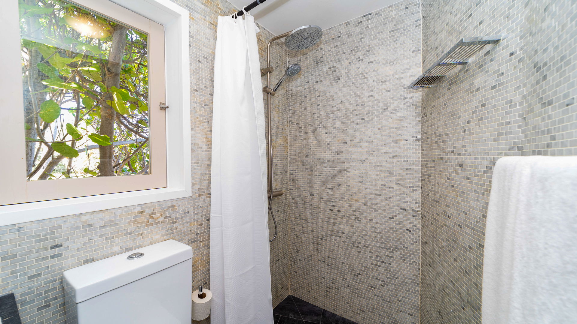 From the terrace, the view over the ocean and the nearby beach is stunning and soothing, always cradled by the music of the waves. In a flowers and palm trees vegetation, the outdoor furniture setup offers many spaces perfect for chatting, reading or resting sessions. In the heart of the greenery, the splendid swimming pool is a true ode to the ocean with turquoise hues. Sun loungers shaded by parasols create a pleasant atmosphere for your relaxing moments while, close to the Caribbean white sand, trade winds gently blow.