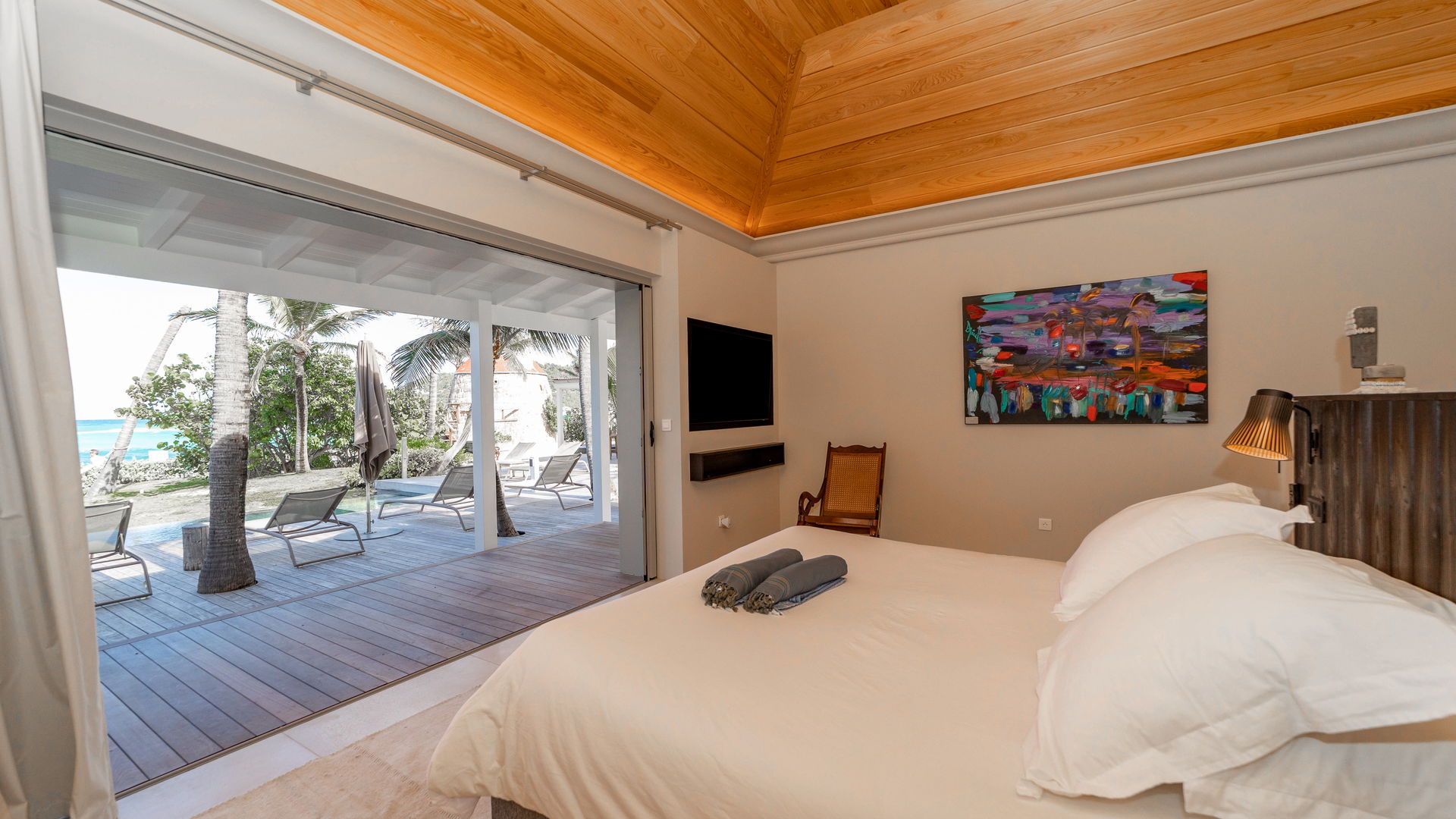 The luxurious beach property villa LE MOULIN in St-Barths has four beautiful air-conditioned bedrooms with en-suite bathrooms and ocean or garden views. They are tastefully decorated and furnished with king size beds or twin beds that can be converted into a king. One of them is located in the old windmill that names this outstanding property. A new bungalow of 40 m2 was recently added in front of the pool, and facing the sea. The charm of the stones combined with the originality of this building in front of the ocean creates a pleasant feeling of wonder and uniqueness.
