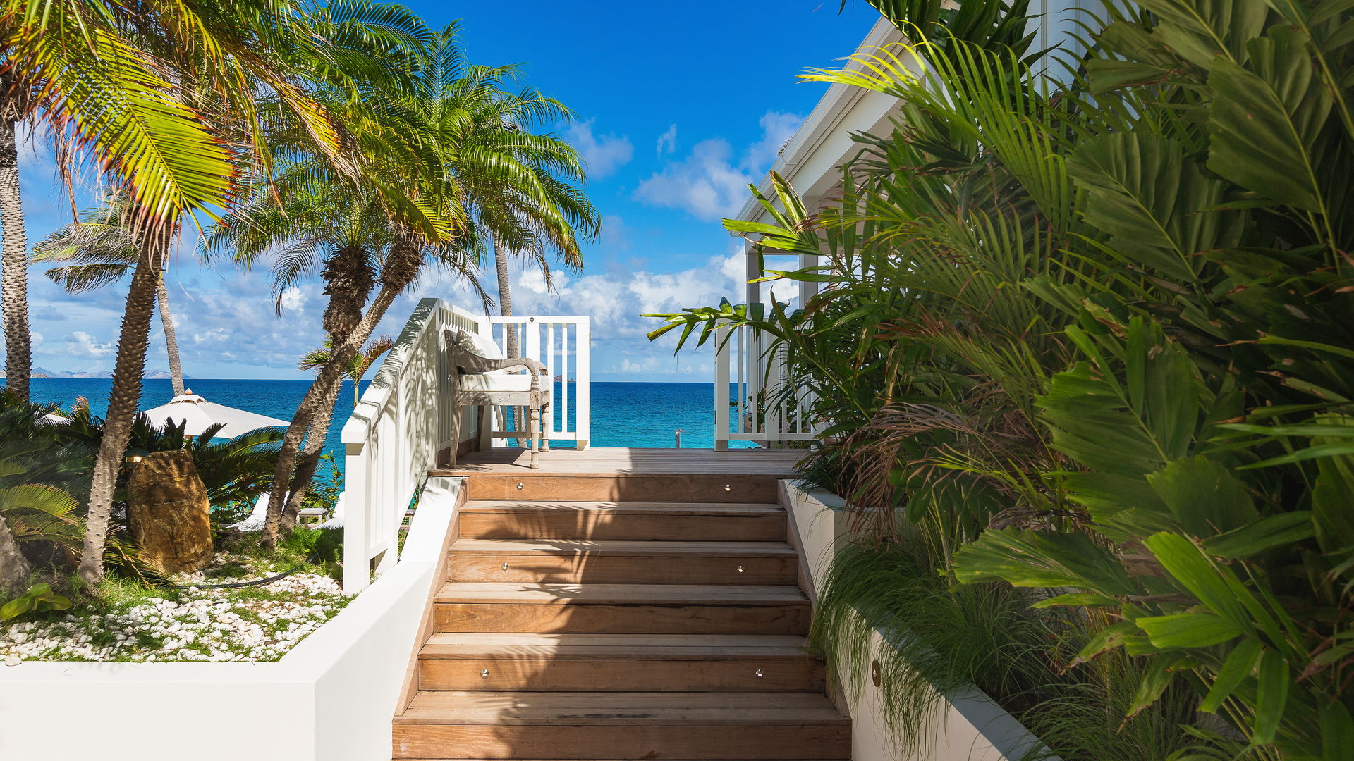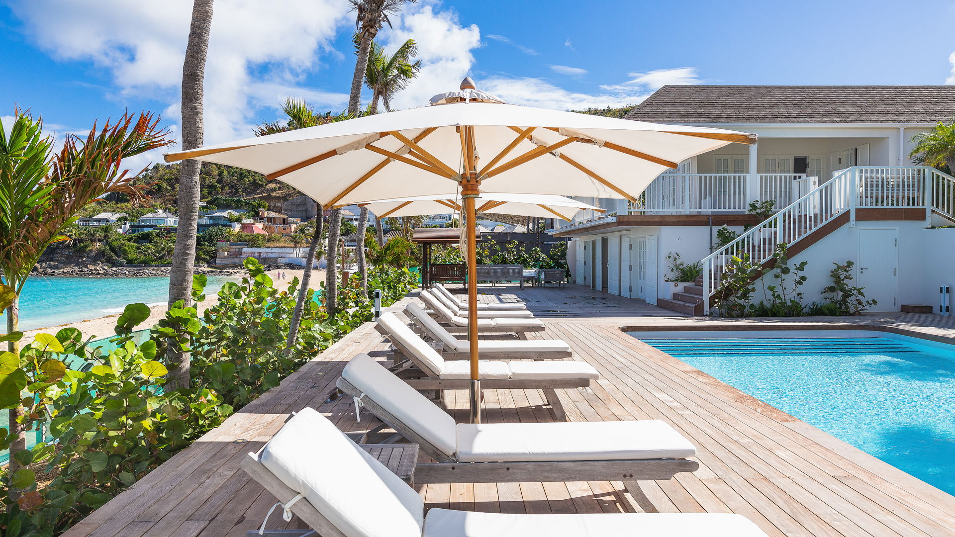 Villa ELA was designed in a Caribbean style, blending the local architecture in multiple pavilions with a decor of white fabrics, dark and light wood floors and mahogany. This is one of the spacious beachfront properties in St-Barths that offer a subtle blend of modernity and authenticity, while always creating a peaceful and soothing atmosphere in every part of the house.