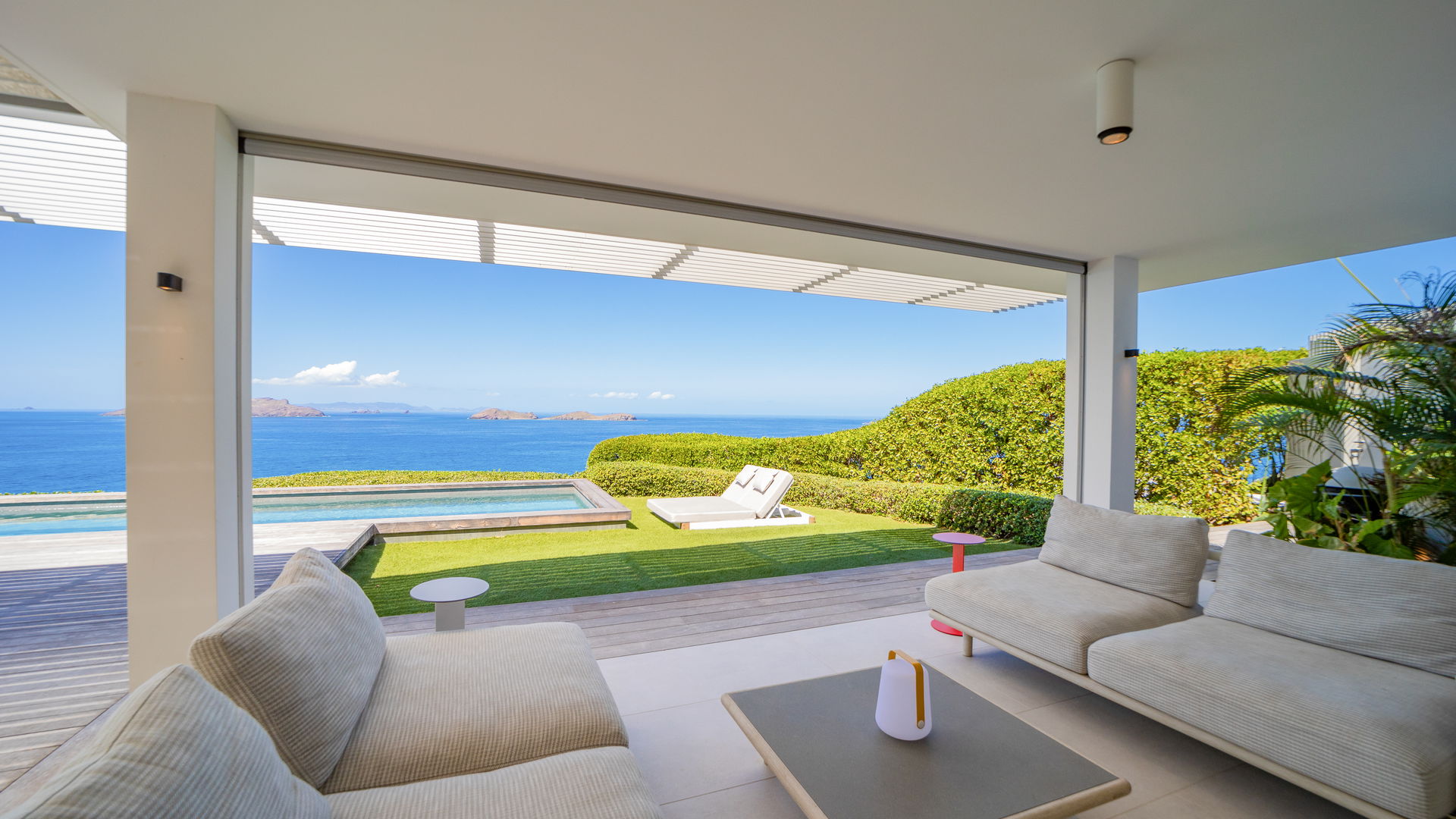 Facing a unique panorama, the villa rental DOMINGUE is the perfect place for a luxurious six-person stay in St-Barths. It can also be rented together with the nearby 1-bedroom villa BELAMOUR, to form an 8-people complex, BEL ESTATE.