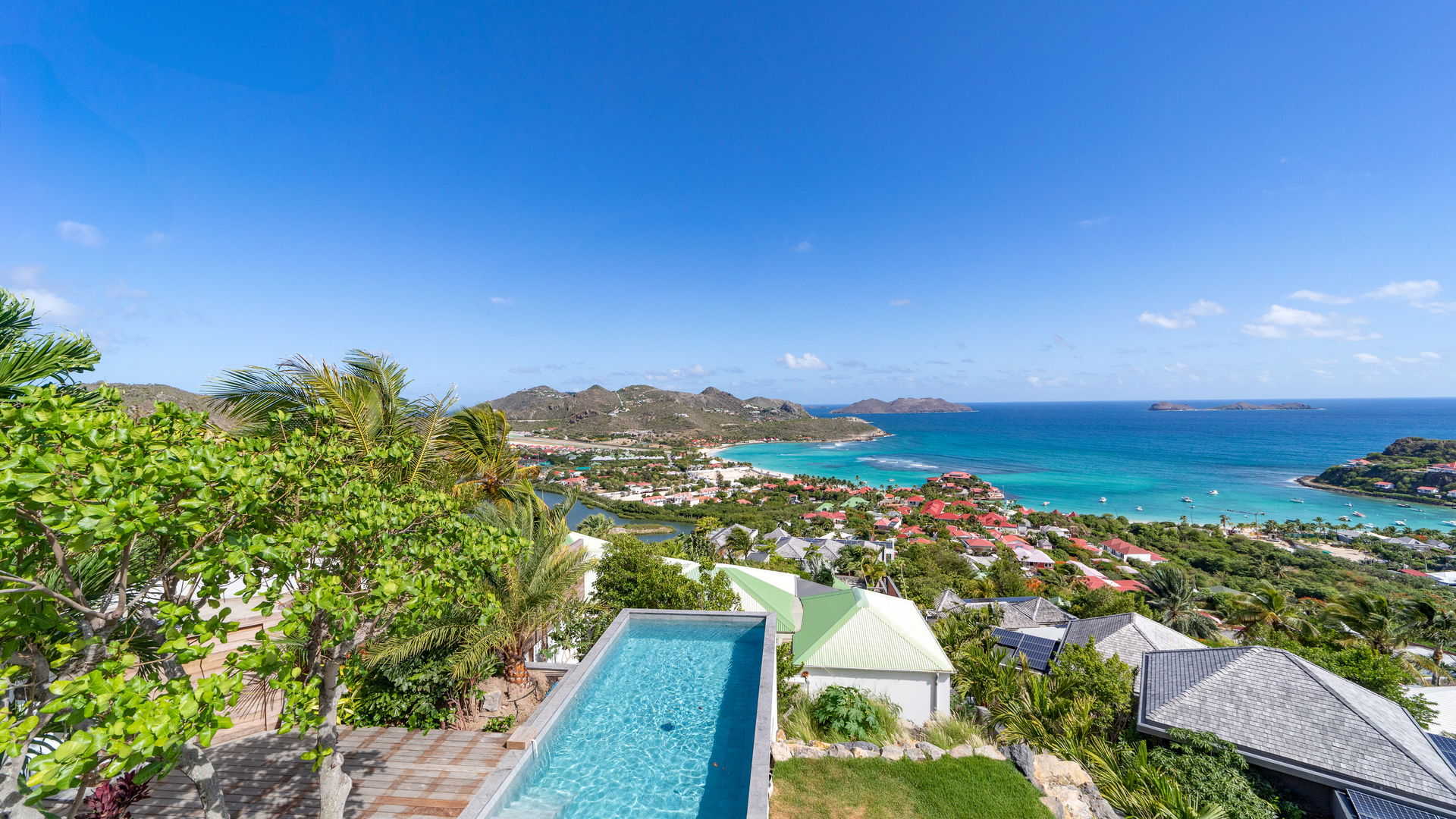 Villa HILL is a charming three-bedroom property located in St-Jean in front of a fantastic view over the bay and the ocean. Nestled in the heart of the green rolling hills, villa HILL is a true haven of peace, a most relaxing place for an unforgettable vacation with family or friends in St. Barths.